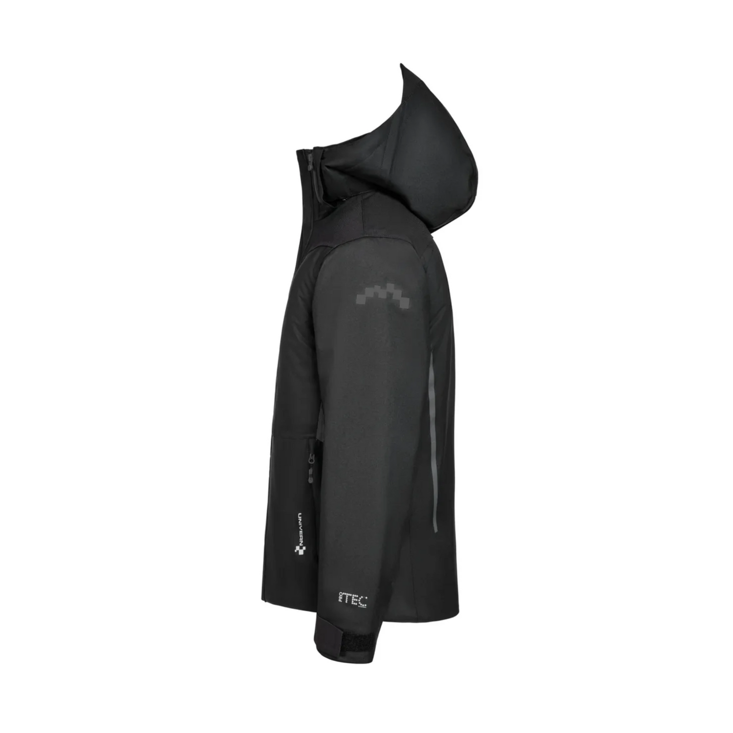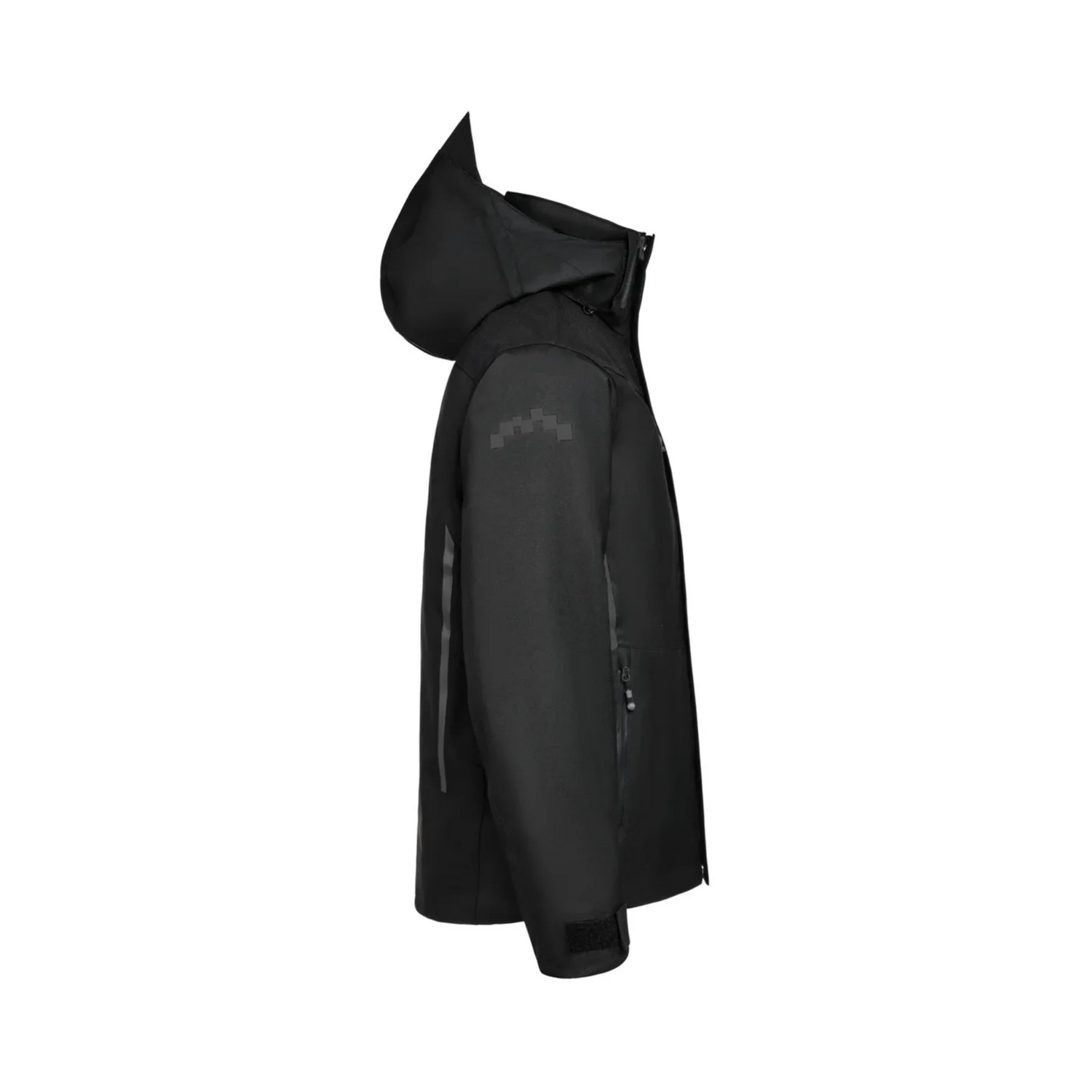 Vind- og vanntett vinterjakke med fullt tapede sømmer i Dope-dye innfarget stoff. Meget høy isolasjonsverdi som holder deg varm på kalde dager. Vanntette glidelåser på bryst- og sidelommer. Avtakbar hette med 3 justeringspunkter. Vanntette glidelåser i siden for mekanisk ventilasjon. Justerbar halsåpning med vanntette glidelåser. Brystlomme med vanntett glidelås og ID-kortlomme. 2 sidelommer med glidelås og mykt, varmende fôr. Håndleddsvarmere med tommelgrep i myk trikot. Justerbar nederkant og ermeavslutning. Mobillomme under knappestolpe.