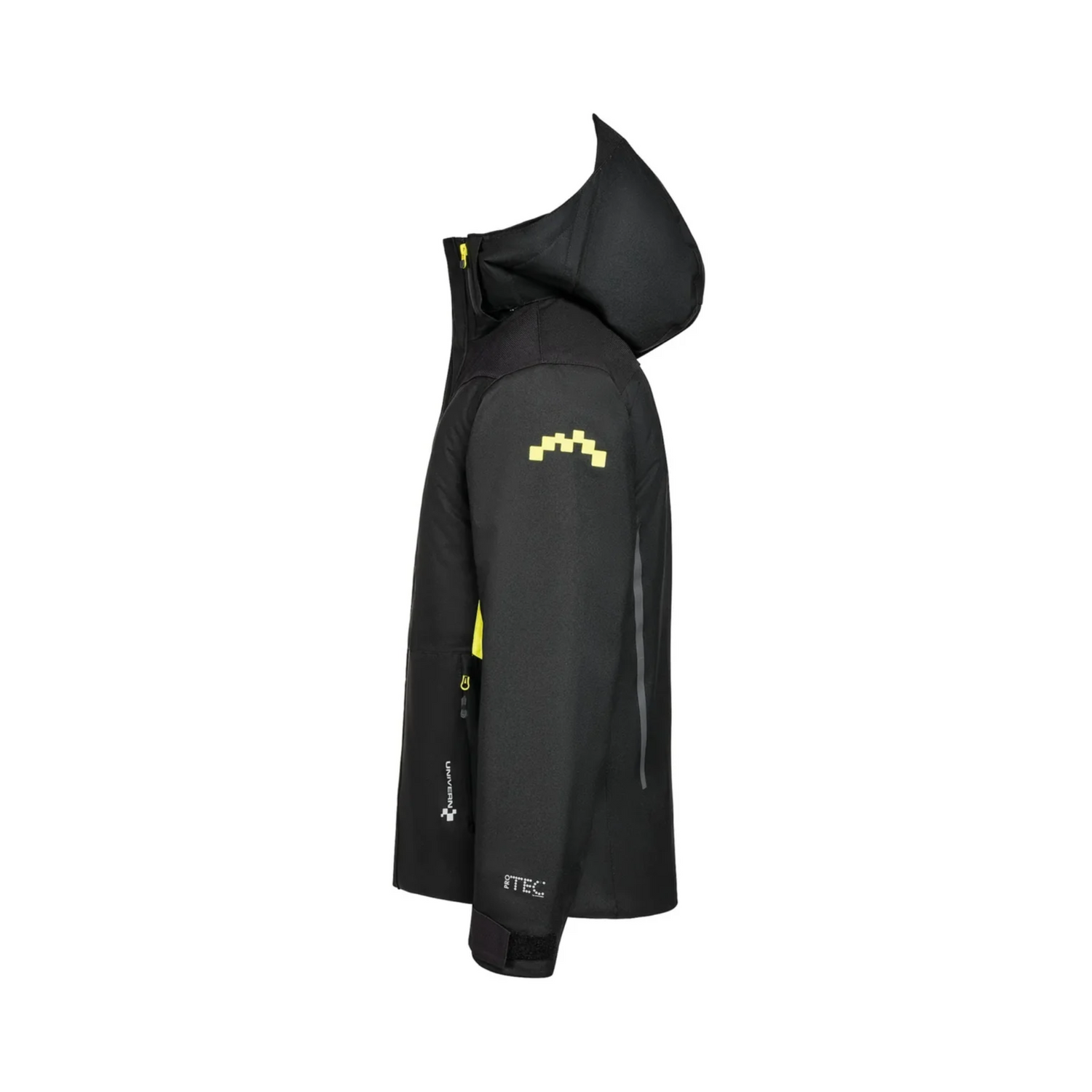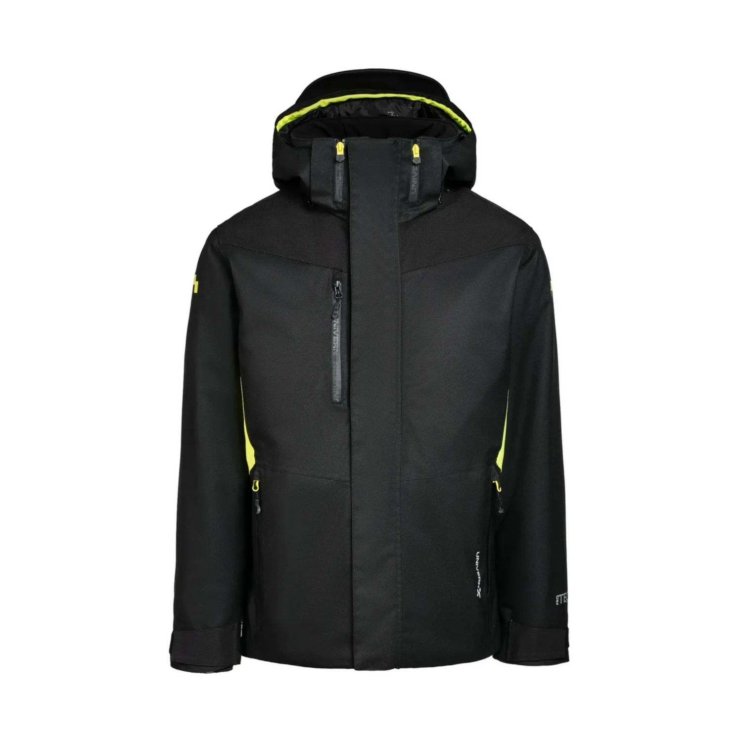 Vind- og vanntett vinterjakke med fullt tapede sømmer i Dope-dye innfarget stoff. Meget høy isolasjonsverdi som holder deg varm på kalde dager. Vanntette glidelåser på bryst- og sidelommer. Avtakbar hette med 3 justeringspunkter. Vanntette glidelåser i siden for mekanisk ventilasjon. Justerbar halsåpning med vanntette glidelåser. Brystlomme med vanntett glidelås og ID-kortlomme. 2 sidelommer med glidelås og mykt, varmende fôr. Håndleddsvarmere med tommelgrep i myk trikot. Justerbar nederkant og ermeavslutning. Mobillomme under knappestolpe.